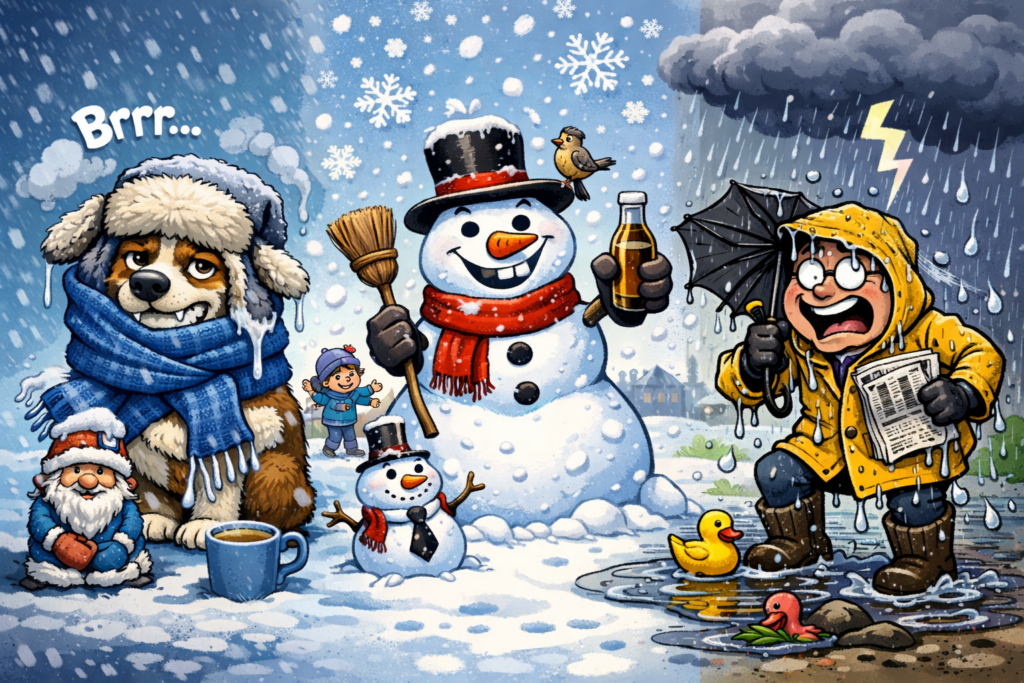 Die letzten zwei Wochen waren wettertechnisch eine Mischung aus Kühlschrank, Schneekugel und Waschstraße. Zuerst Minusgrade, dass selbst der Kaffee überlegte, ob er gefrieren soll. Autos starteten nur widerwillig, Hände verschwanden tief in Taschen, und jeder Atemzug erinnerte daran, dass der Winter noch nicht aufgegeben hatte.